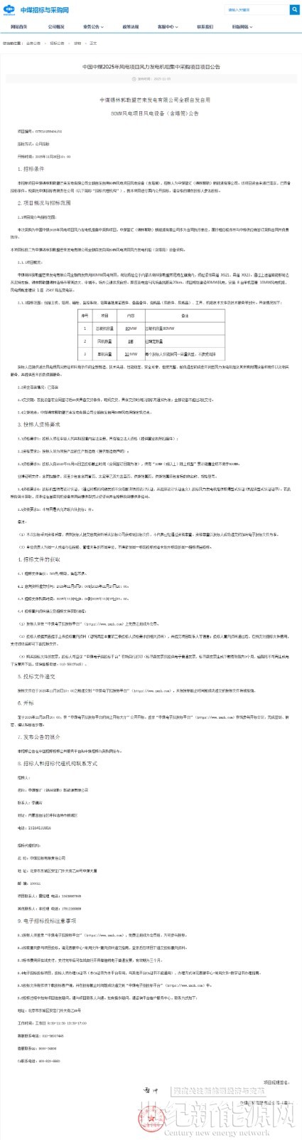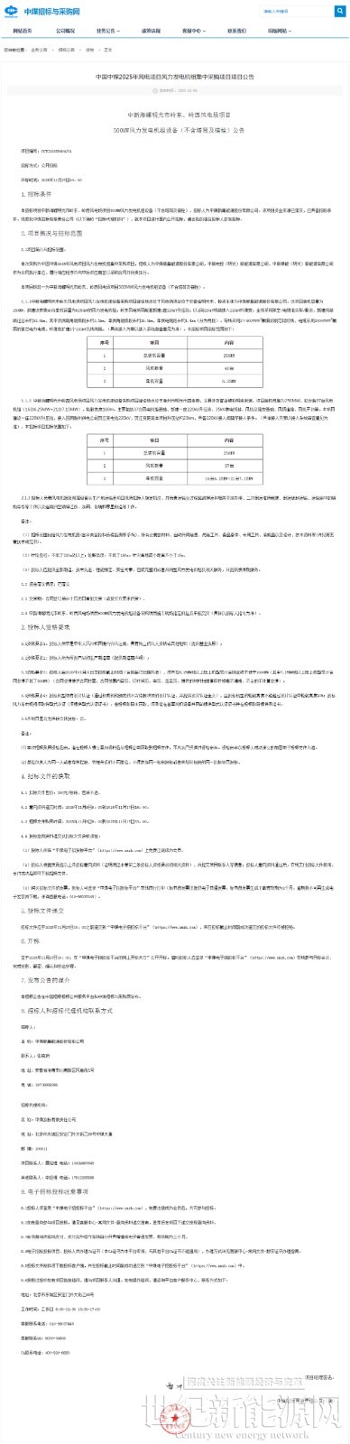 近日,华润、中煤发布多个风电项目风力发电机组采购招标公告,规模合计980MW,单机容量最大10MW。