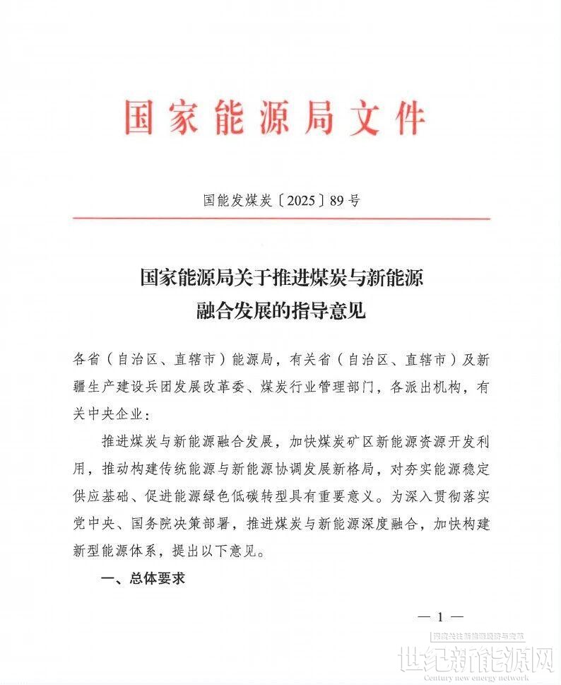近日,国家能源局下发《关于推进煤炭与新能源融合发展的指导意见》。
