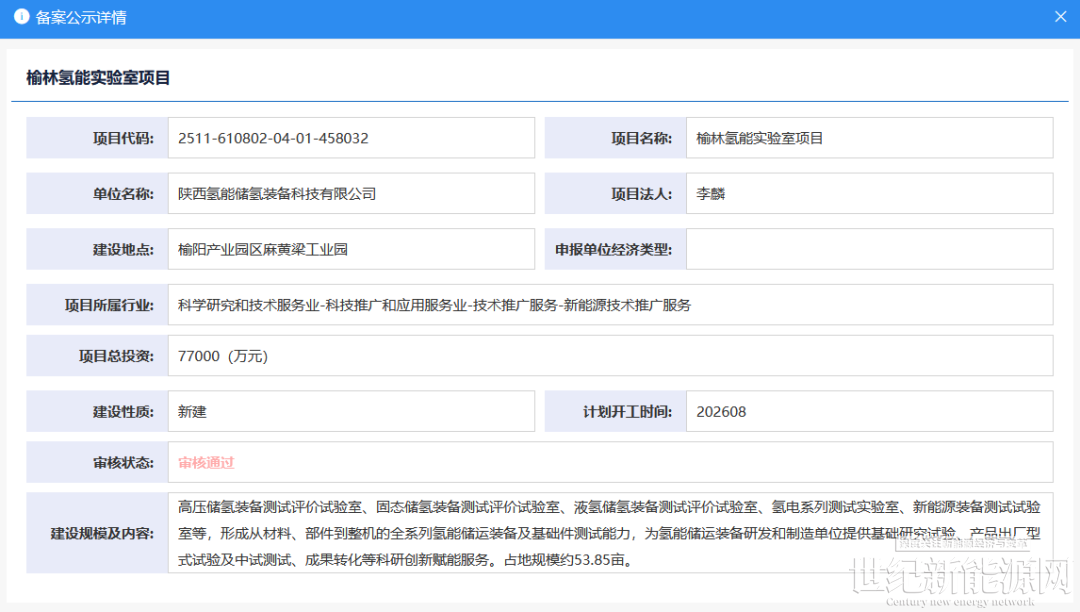 近日,陕西政务服务网发布榆林氢能实验室项目获批公告。