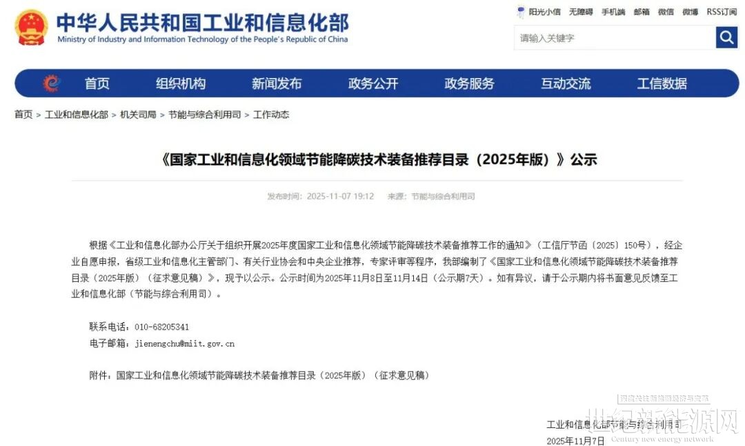 近日,工业和信息化部节能与综合利用司发布《国家工业和信息化领域节能降碳技术装备推荐目录(2025年版)》公示。