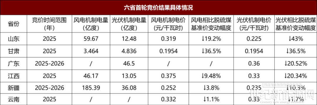 从竞价结果来看,光伏、风电申报电量规模均低于机制电量核定规模,机制电价则均为上限的0.24元/瓦。截止到目前为止,山东、甘肃、新疆、广东、云南、江西6省的机制电价均已公示。
