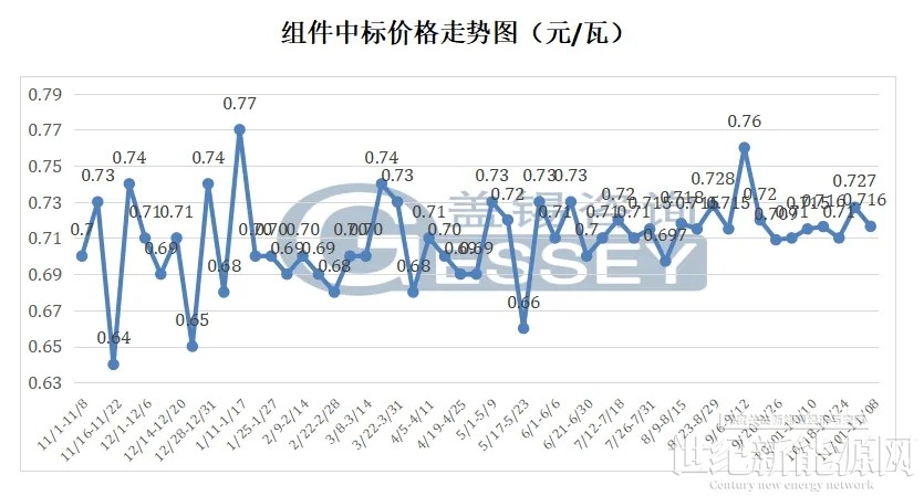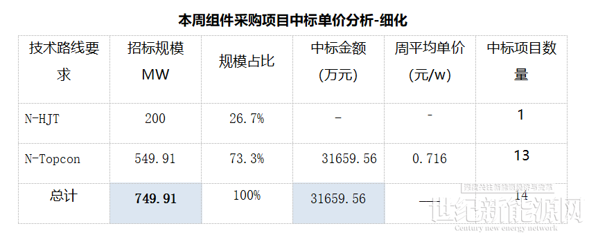 本月光伏组件采购中标规模达754.004MW,总中标金额31659.556万元,平均中标单价为XX元/W,中标数量14个。
