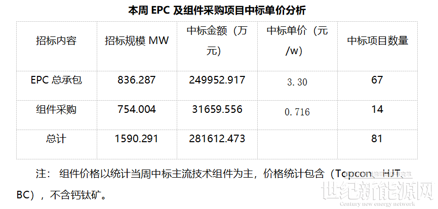 三、EPC总承包及组件采购情况汇总