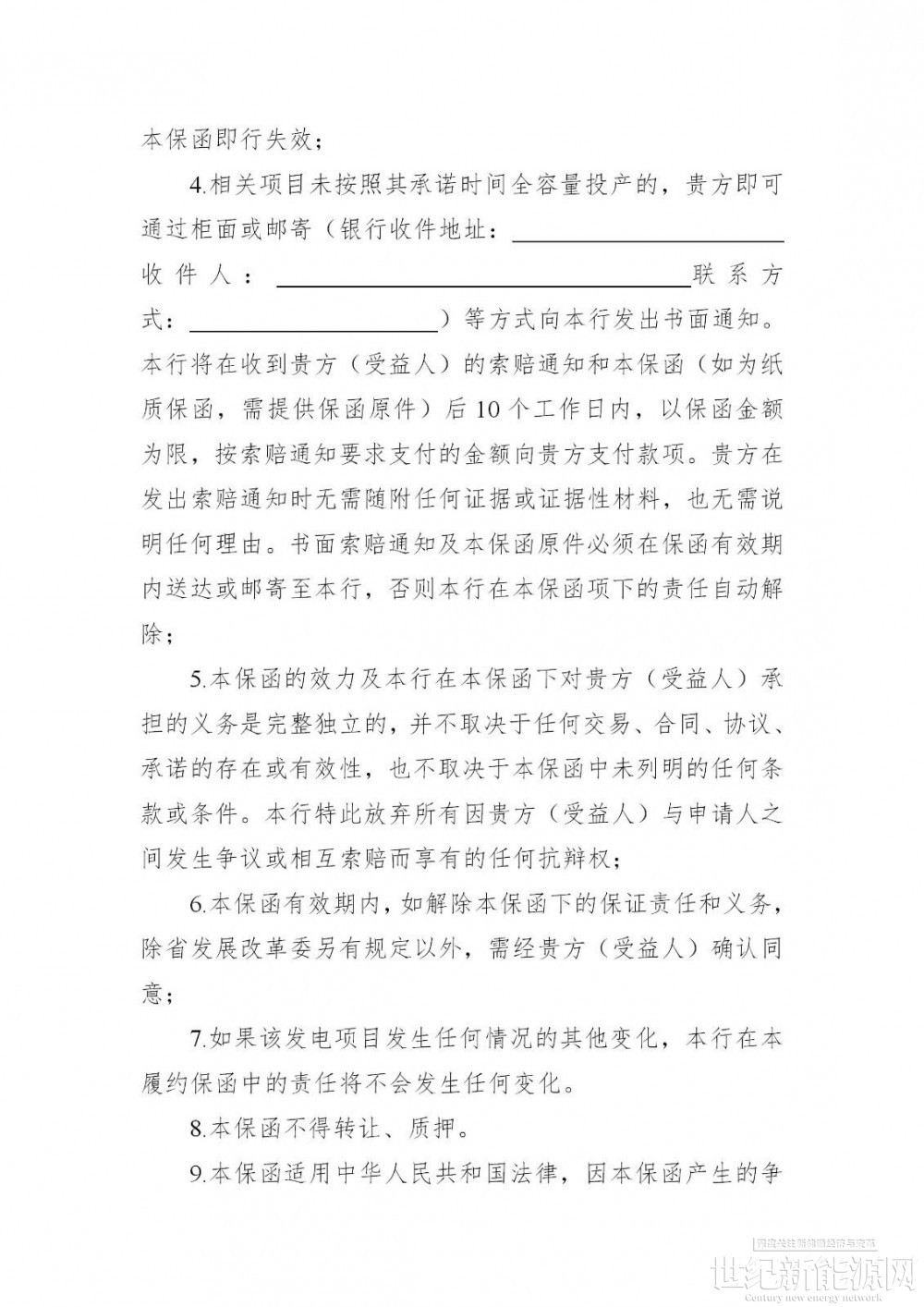 (二)履约保函。拟参与竞价的未投产项目(含未取得电力业务许可证项目)需向竞价组织机构提交履约保函(模板见附件4),已投产项目(需取得电力业务许可证)参与竞价的原则上不需提交保函。履约保函为银行出具的、向竞价组织机构开立的书面信用担保凭证,保函有效期为项目承诺投产时间1年后。