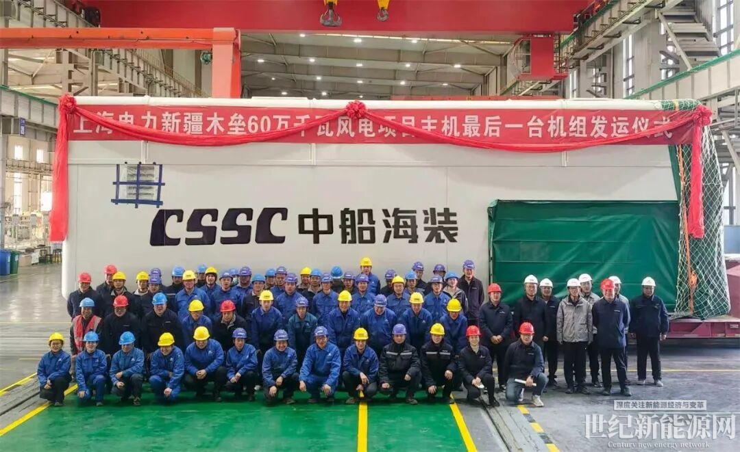 11月12日,中船科技新疆哈密基地为新疆木垒1000万千瓦新能源“头号工程”——国家电投上海电力新疆木垒120万千瓦风电项目生产的最后一台机组成功发运,标志着中船科技为该项目提供的96台机组全部圆满交付“收官”,将为项目实现全容量并网发电提供最强“助攻”,也将为木垒县2025年度实现新增1000万千瓦新能源目标贡献硬核力量。