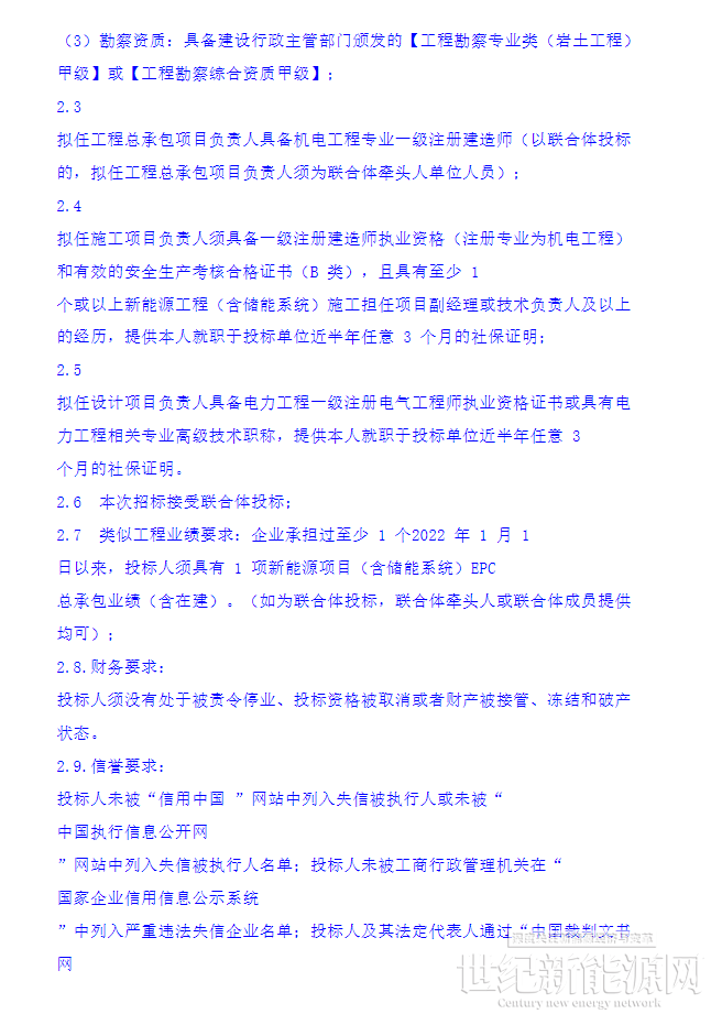 投标人需具备至少1个2022年1月1日以来新能源项目EPC总承包业绩,且本次招标接受联合体投标。