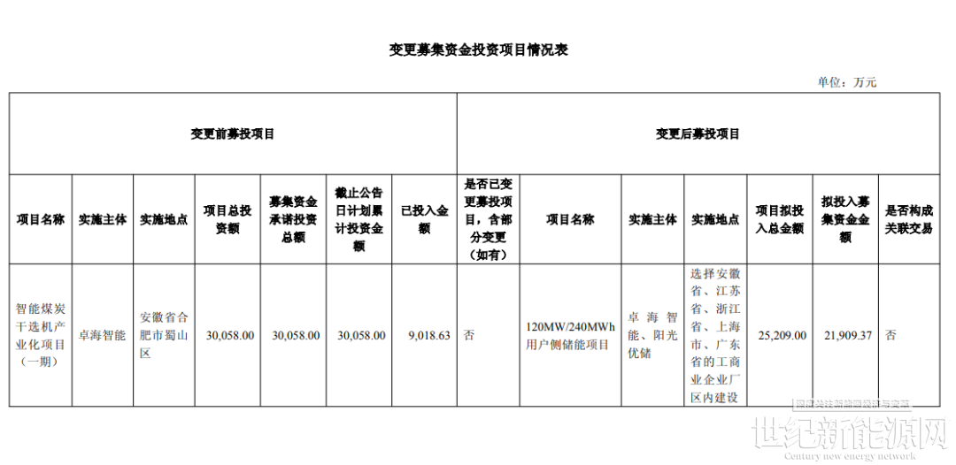 11月23日晚,泰禾智能发布公告称,拟终止此前募投项目,并将剩余资金2.1亿元投向120MW/240MWh用户侧储能项目,实施主体由卓海智能变更为卓海智能和安徽阳光优储新能源有限公司。