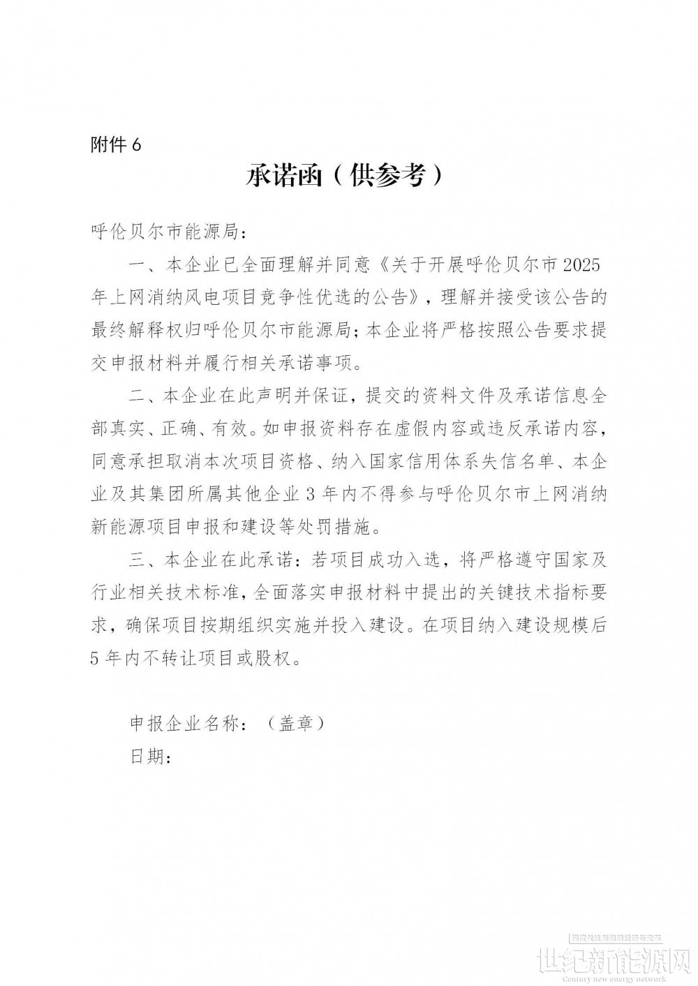 呼伦贝尔市能源局关于开展呼伦贝尔市2025年上网消纳风电项目竞争性优选的公告