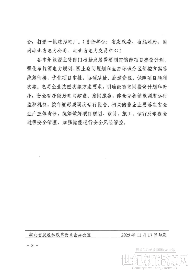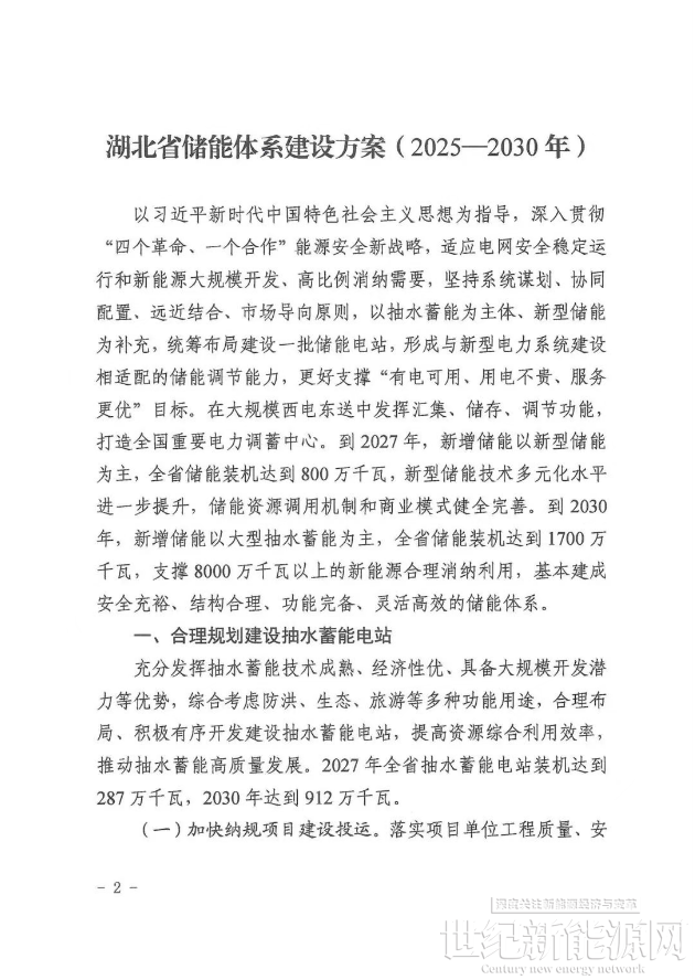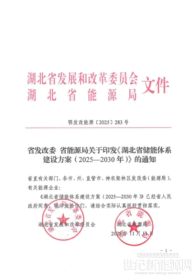 近日,湖北省能源局、湖北省发改委印发《湖北省储能体系建设方案(2025-2030年)》。