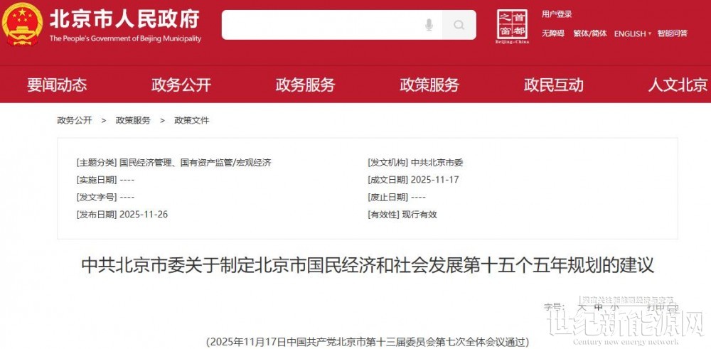 近日,北京市人民政府发布《中共北京市委关于制定北京市国民经济和社会发展第十五个五年规划的建议》。