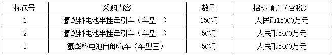 项目采购氢燃料电池半挂牵引车及氢燃料电池自卸汽车共250辆,招标总预算25800万元。招标人为鸿景创能物联科技(广州)有限公司。