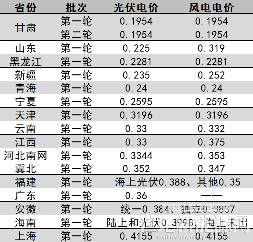 截至目前,全国已有15个省份完成竞价,其中甘肃电价最低,只有0.1954元/度,上海电价最高,高达0.4155元/度,两省相差0.2201元/度。
