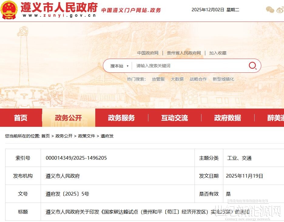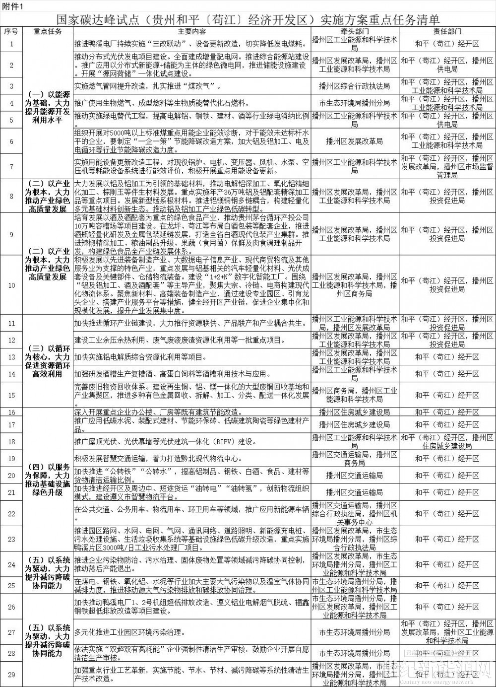 近日,遵义市人民政府关于印发《国家碳达峰试点(贵州和平〔苟江〕经济开发区)实施方案》的通知。