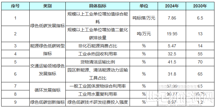(三)主要目标。到2030年,能源消费结构优化取得明显进展,非化石能源消费比重提高到14%以上,清洁低碳终端用能体系基本形成,重点领域绿色低碳发展模式成效显著,低碳高效的“1+2+N”现代化产业体系基本建立,绿色低碳技术创新应用取得实质性突破,产业型循环经济发展模式全面形成。