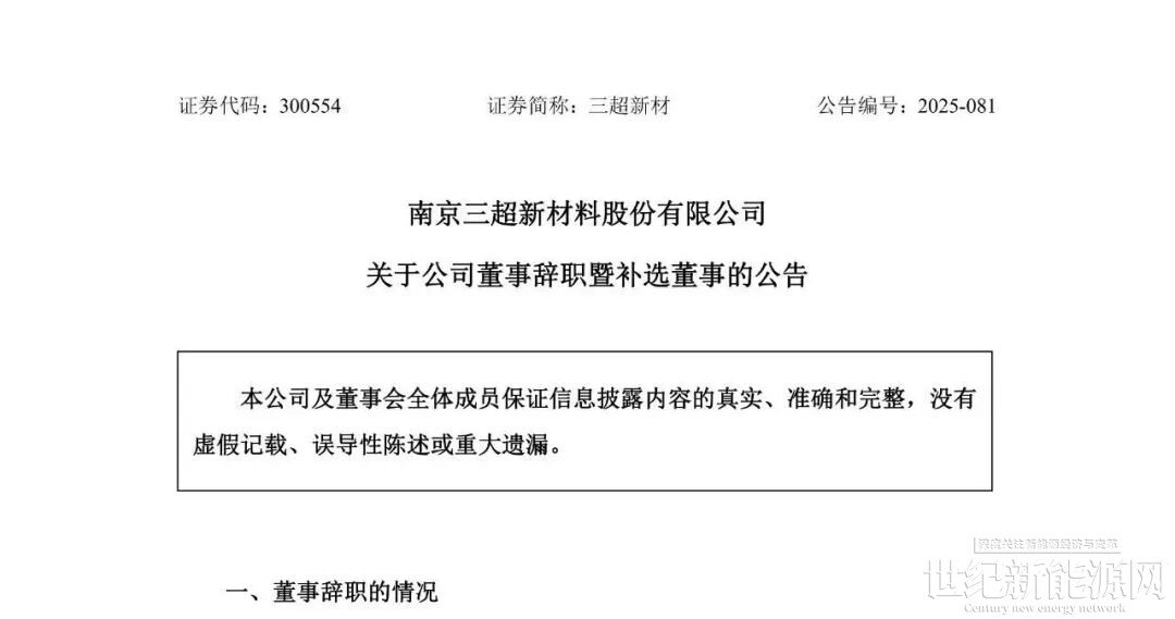 治理结构调整同步落地。12月1日,三超新材公告称,因控制权变更及董事会改组需要,董事长邹余耀、董事吉国胜、周海鑫、姜东星及独立董事李寒松、党耀国合计6名董事申请辞职。本次辞职后,邹余耀先生、吉国胜先生、周海鑫先生仍在公司担任其他管理职务,姜东星先生、李寒松先生、党耀国先生不再担任公司任何职务。随后,博达合一推荐的高管团队进入董事会,标志着公司决策层完成新旧交替,治理结构调整基本到位。