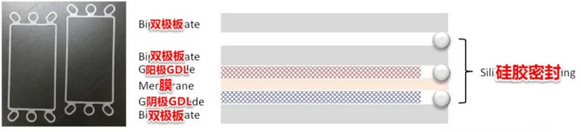 一些制造商使用粘着工艺,一些企业(如KODEVO)使用与GDL集成的密封圈(见下图)。因此,阳极板制造商的生产过程不一定包括这个阶段。