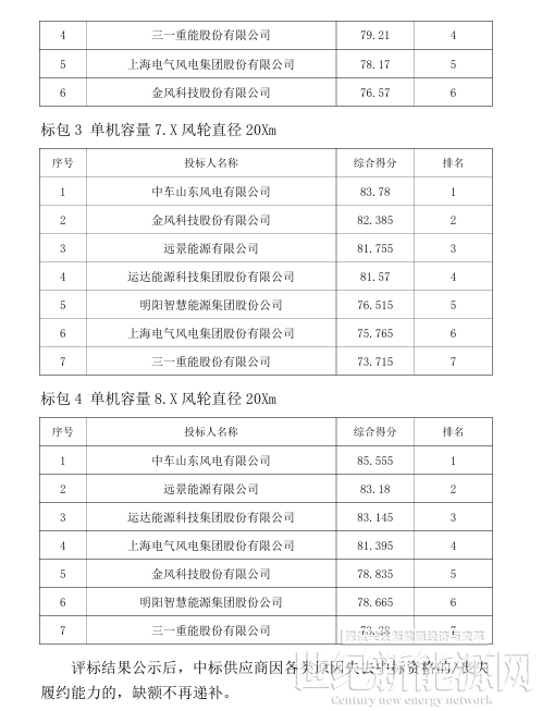 招标公告显示,项目容量区间5.X包含范围为5.0≤P<6.0;6.X包含范围为6.0≤P<7.0;7.X包含范围为7.0≤P<8.0;8.X包含范围为8.0≤P<9.0;风轮直径20Xm包含范围为200m≤Y<220m;塔筒参考高度为120米。