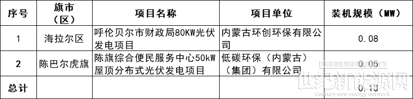呼伦贝尔市2025年第四季度分布式光伏项目名单