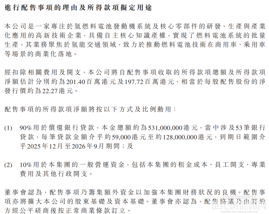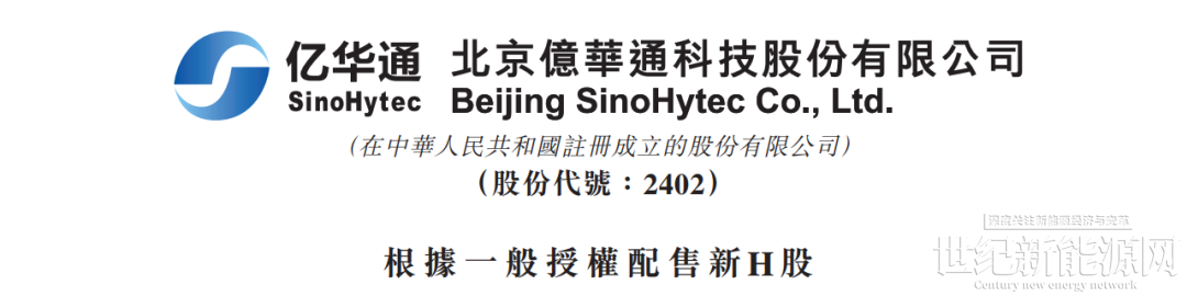 12月16日,国内燃料电池系统龙头亿华通(02402.HK)(688339.SH)披露一则配股筹资公告,配售价每股22.68港元,较较公告前一个交易日(12月15日)收市价26.68港元折让14.99%。配售888万股新H股,新股占经扩大已发行股本比例3.69%。