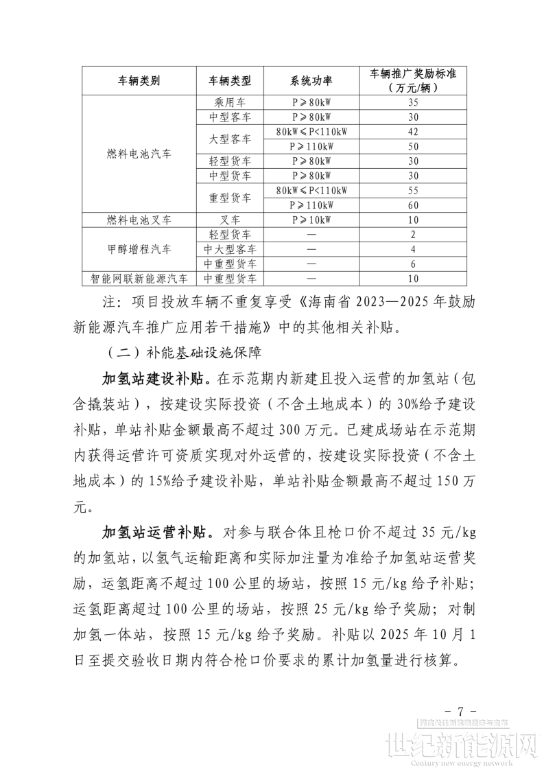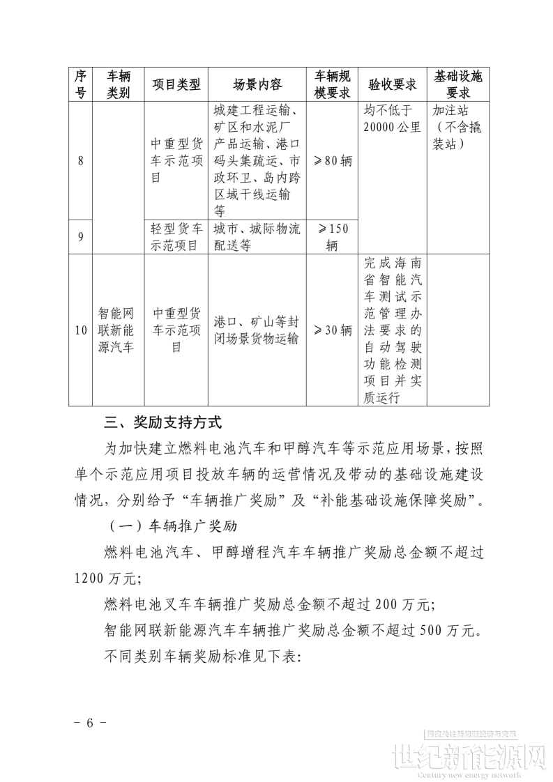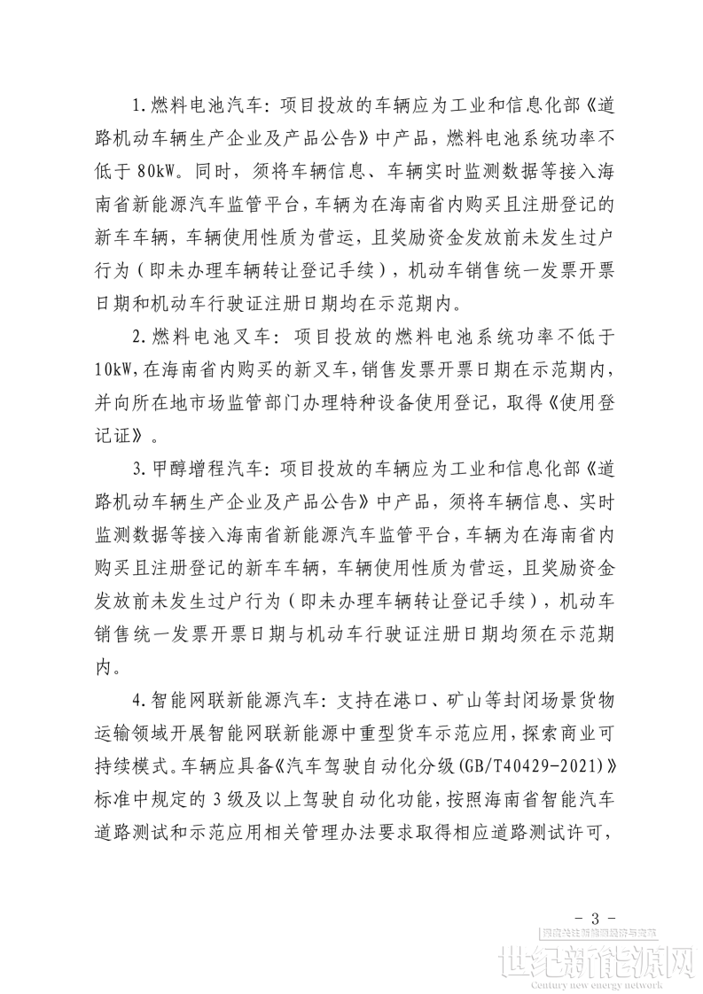 1.海南省燃料电池汽车等技术示范应用项目第二批(2025—2026年)奖励方案
