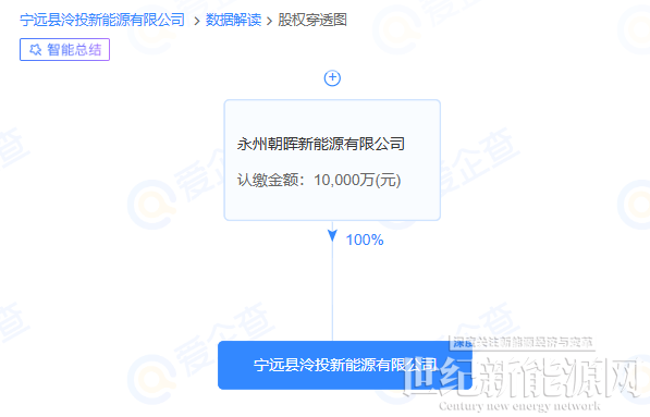 股东信息显示,该公司由永州朝晖新能源有限公司全资持股。