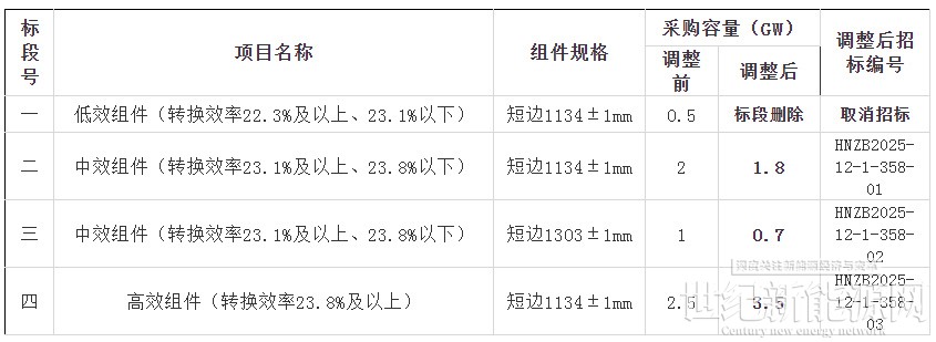 因采购方案调整,原“中国华能集团有限公司2025年光伏组件框架协议采购”重新招标,因框架协议有效期变更为2026年12月31日,原招标项目名称“中国华能集团有限公司2025年光伏组件框架协议采购”变更为“中国华能集团有限公司2026年光伏组件框架协议采购”。