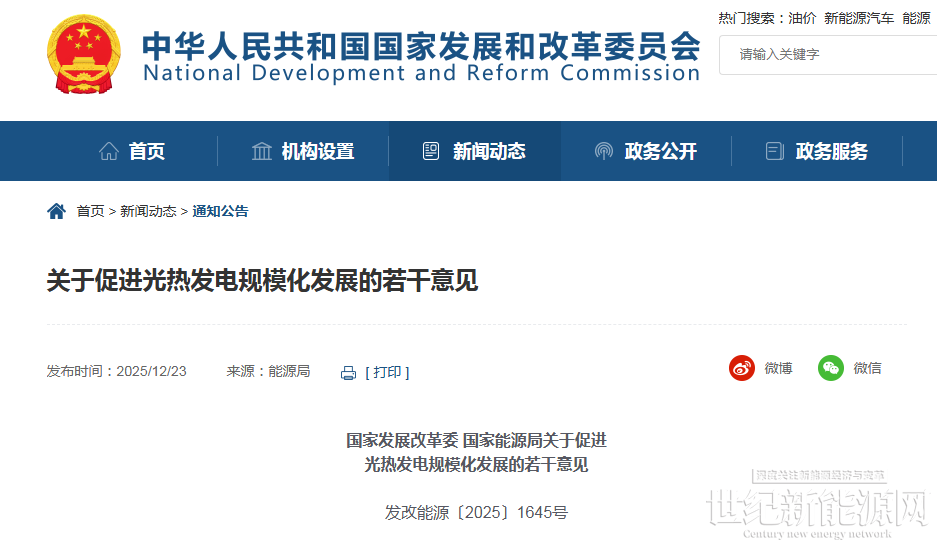 12月23日,国家发展改革委、国家能源局发布关于促进光热发电规模化发展的若干意见。
