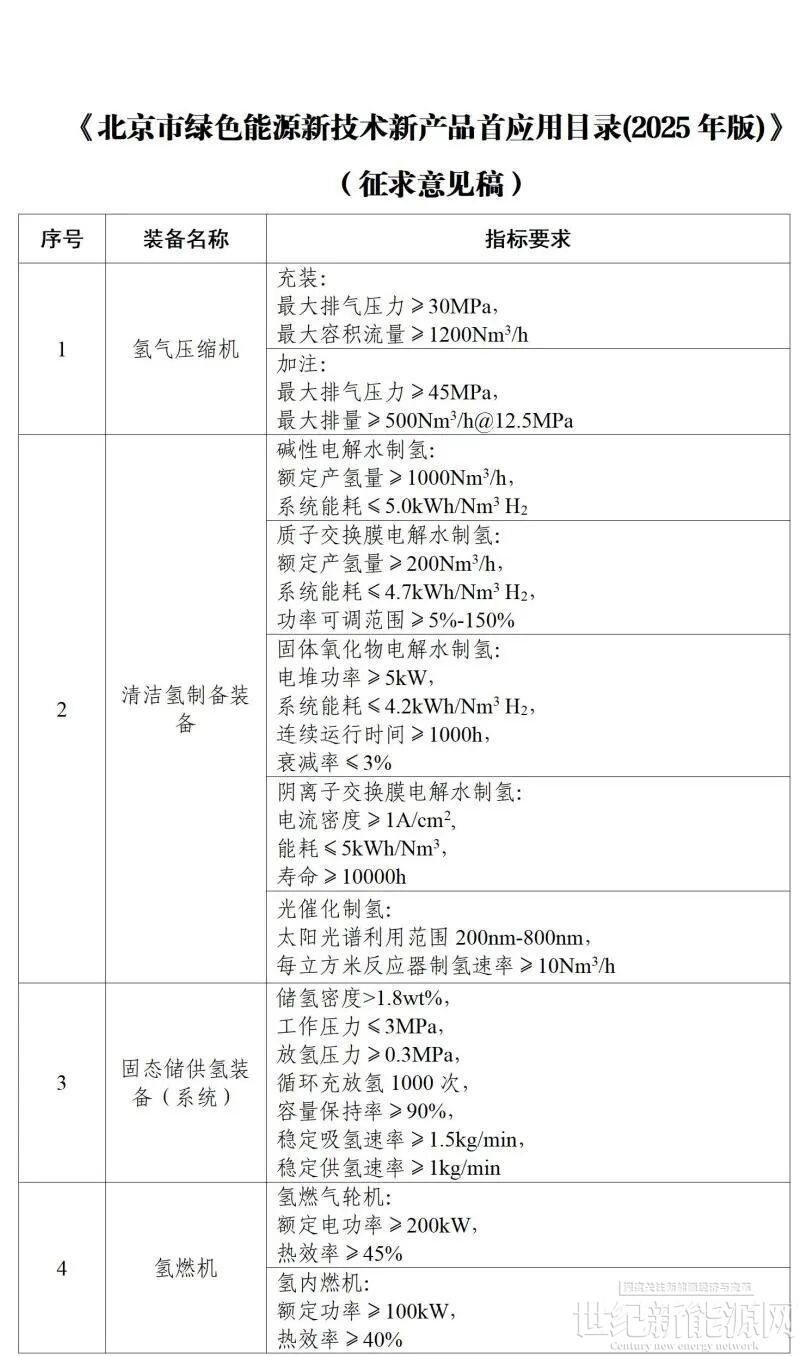 1.《北京市绿色能源新技术新产品首应用目录(2025年版)》(征求意见稿)