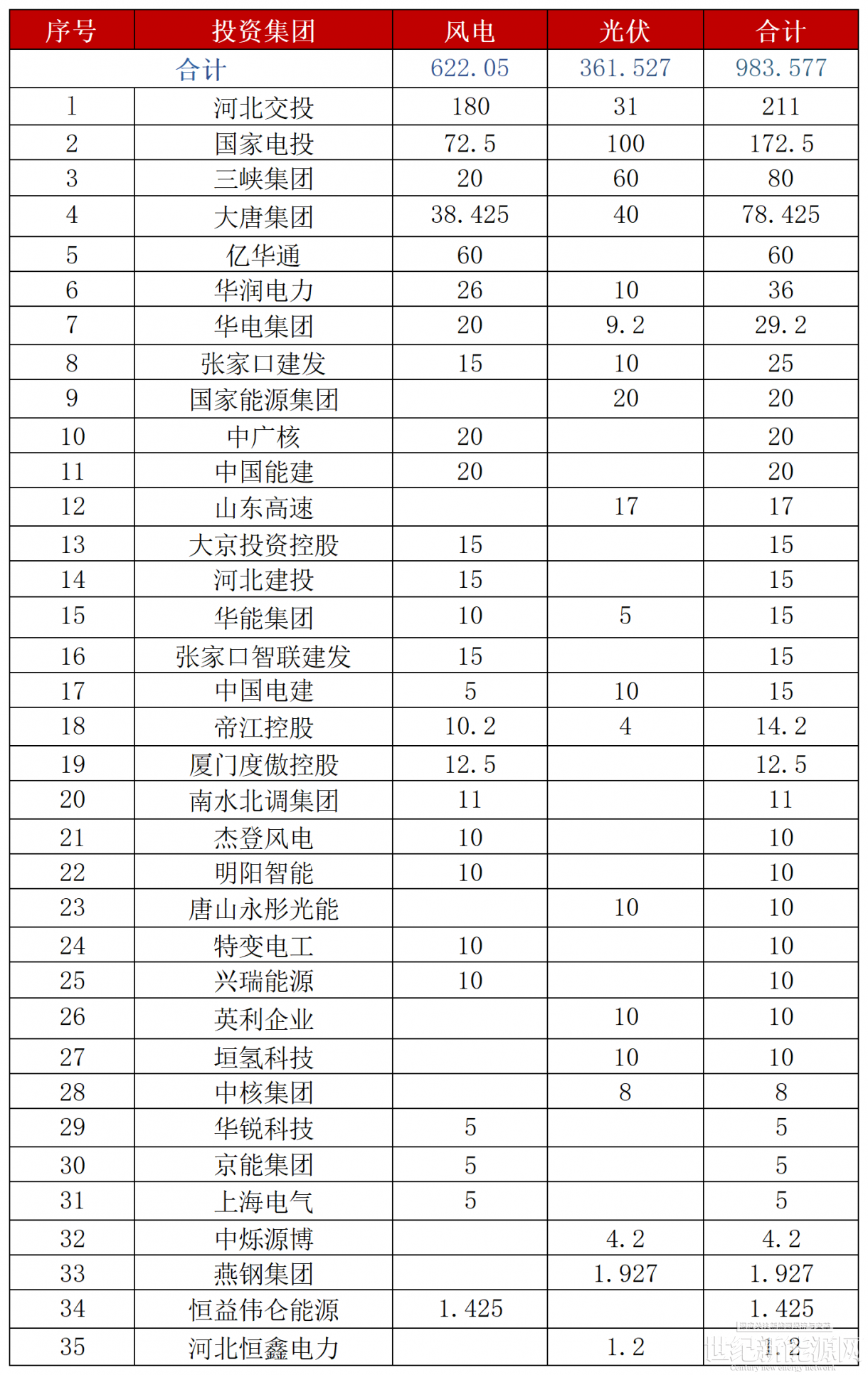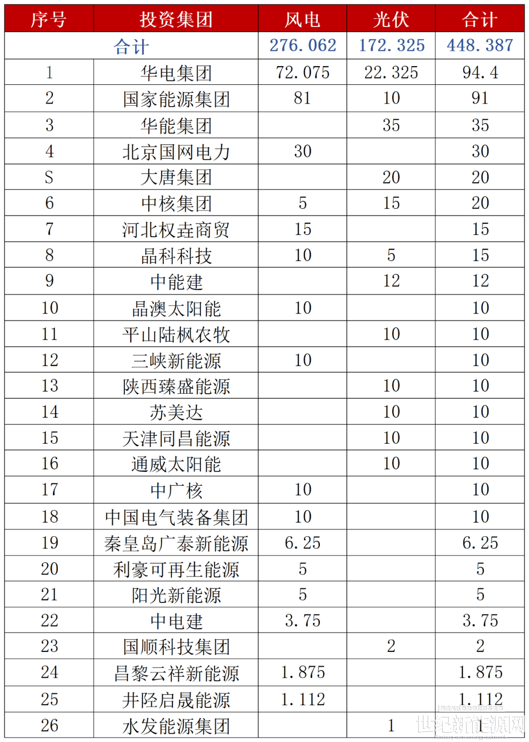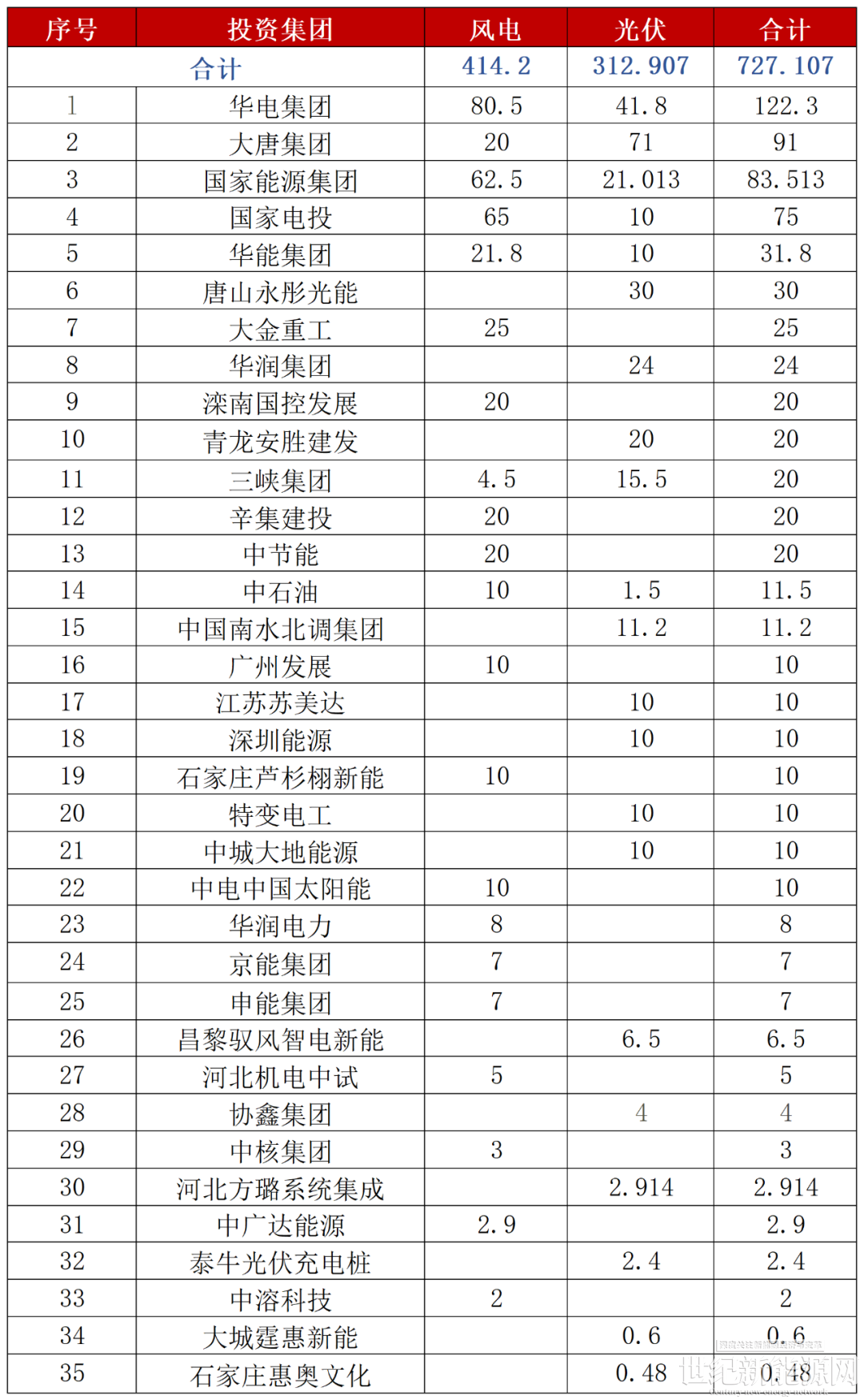 河北2025年第一批风、光项目投资人情况(单位:万千瓦)