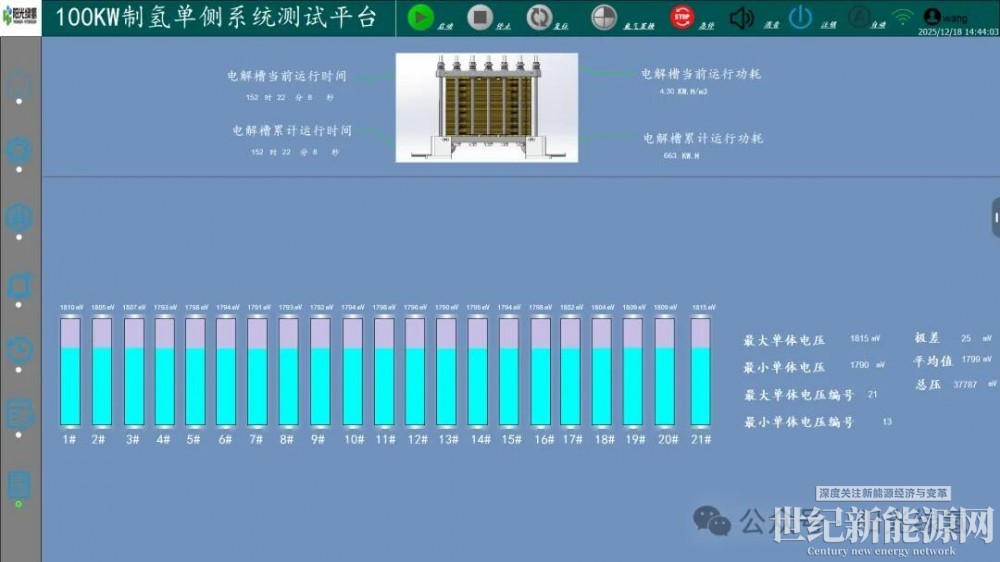 满负荷连续稳定运行:在100kW额定功率下长时间运行,各项参数波动极小,电解效率、气体纯度等指标均优于设计标准。