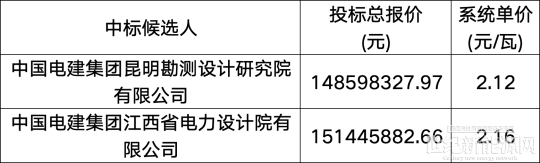 12月30日,江西公司国能江西新能源产业有限公司九江市共青城市苏家垱乡70MW渔光互补一体化综合示范项目EPC总承包工程公开招标中标候选人公示,中国电建集团昆明勘测设计研究院有限公司以2.12元/瓦位列第一候选人,招标人及项目单位为:国能江西新能源产业有限公司共青城市分公司。