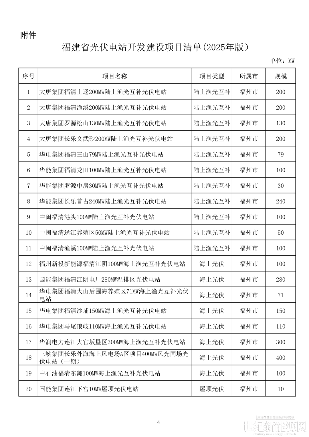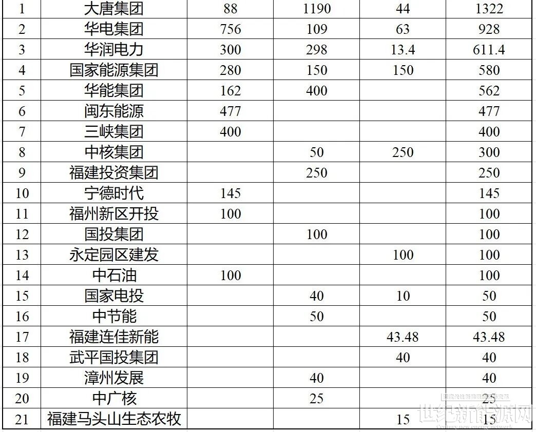 表:福建省2025年光伏项目投资企业情况(单位:MW)