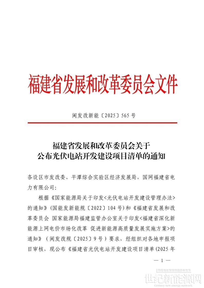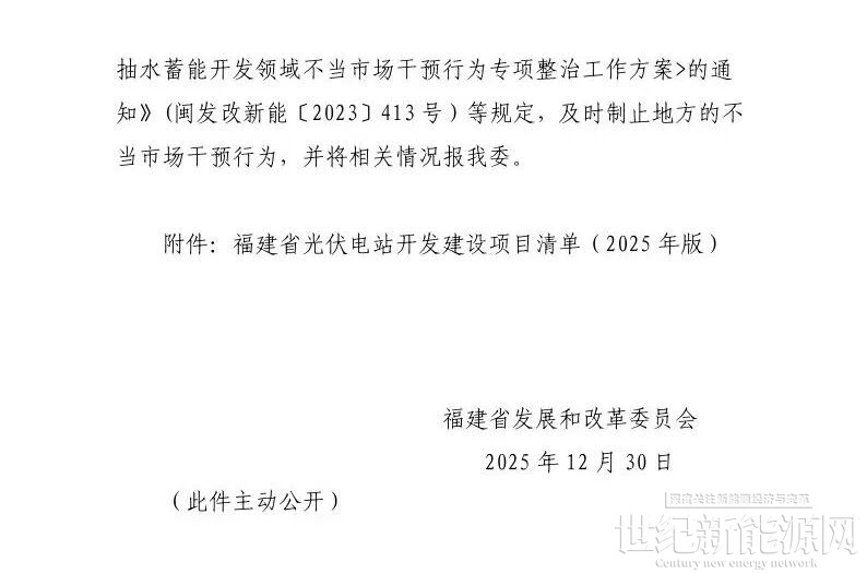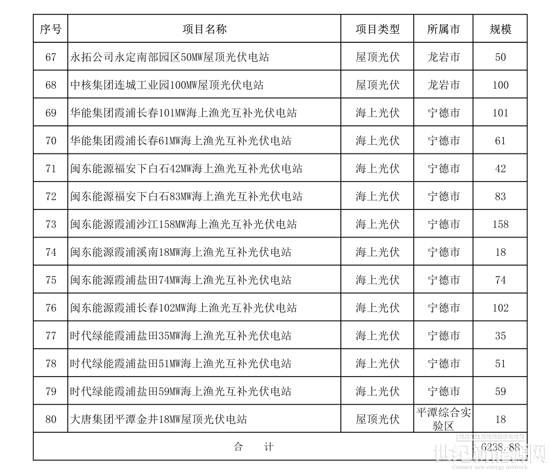 12月31日,福建省发改委发布《关于公布光伏电站开发建设项目清单的通知》,共80个光伏项目清单,总容量6238.88MW(文件和清单附后)。