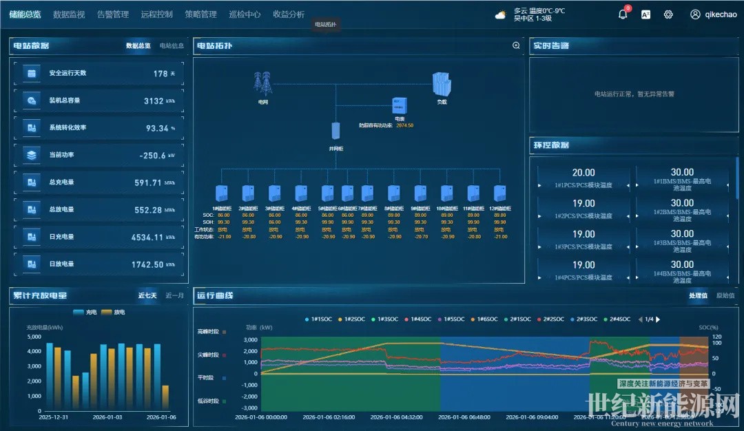 项目深度耦合厂区光伏系统,构建“光储协同”体系。白天光伏发电优先满足园区需求,余电存入储能系统;夜间或用电高峰时,储能设备放电补位,形成“自发自用、余电交易”的闭环。据测算,该模式每年可为园区节省电费超百万元,同时减少碳排放约800吨。更值得一提的是,储能系统接入弘正智慧管控云平台,通过AI算法精准预测负荷与电价,优化电价套利收益,并探索参与虚拟电厂、辅助服务等场景,进一步释放储能的多维价值。