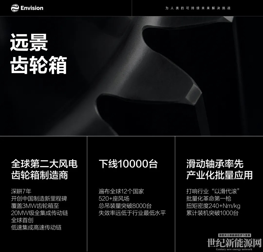 在核心零部件上,远景能源成为全球首个率先实现自研自制滑动轴承大批量投运的整机商,打响行业 “以滑代滚”批量化革命第一枪,其扭矩密度达到240+ Nm/kg,处于行业领先地位,该技术已在1000台机组成功运行。凭借自主研发与持续创新,远景能源在全球传动链市场稳居领先地位,为中国风电装备向更高功率、更高可靠性和更高度电价值发展提供了坚实支撑。