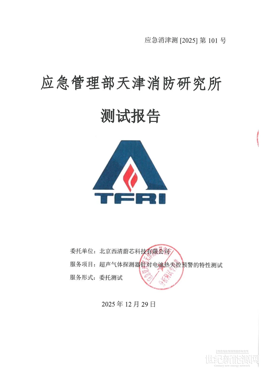 基于以上背景,北京西清能源科技有限公司(子公司:西清蔚芯)正式推出MEMS工艺超声气体探测器,并于2025年12月29日通过天消所应用场景测试并取得报告。该气体探测器依托500余项核心专利构建坚实技术壁垒,带来三大颠覆性优势:
