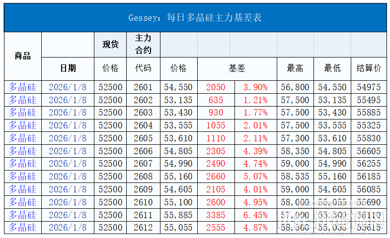 今日硅料价格整体维稳,N型料主流价格在50-56元/公斤,均价52.5元/公斤。N型颗粒硅主流价格在47-51元/公斤,均价50元/公斤。国产复投特级硅料主流价格在36-44元/公斤,均价43.5元/公斤,国产致密特级硅料主流价格在35-43元/公斤,均价42.5元/公斤。全球多晶硅料主流价格在19-22元/公斤,均价20元/公斤。
