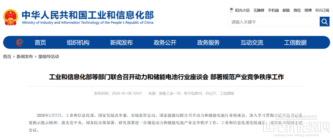 据世纪储能了解,近日工业和信息化部、国家发展改革委、市场监管总局、国家能源局四部门“再次”联合召开动力和储能电池行业座谈会,研究进一步规范行业竞争秩序。