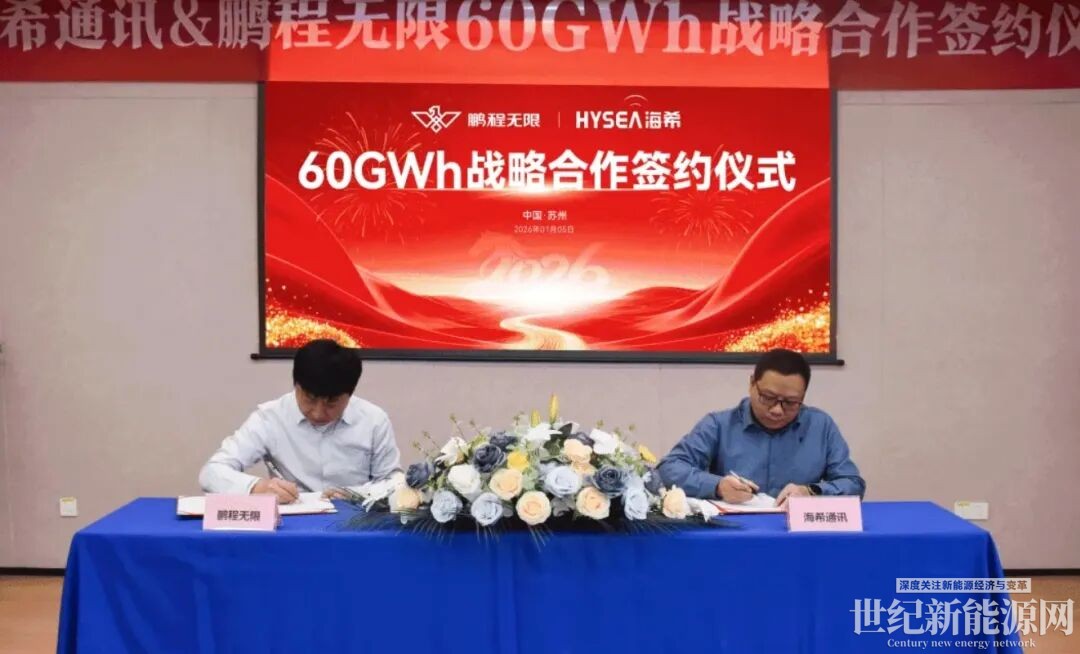 据世纪储能了解到,1月5日市场消息称海希通讯与鹏程无限正式签署一项规模达60GWh的战略合作协议,并配有现场签约图片,按照行业中标的单价测算,此次合作金额达到30.6亿元。
