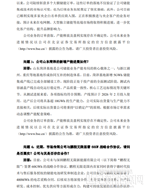 这一案例也反映出,在行业快速扩张阶段,市场信息传递有时存在预期与实际的落差。尽管自2025年开始储能市场大单不断,但目前终端需求与项目落地节奏,尚难以支撑短期内数十吉瓦时的超大规模合作。在储能行业逐步转向“市场驱动”的进程中,务实经营、信息披露规范将成为企业赢得长期信任的关键。