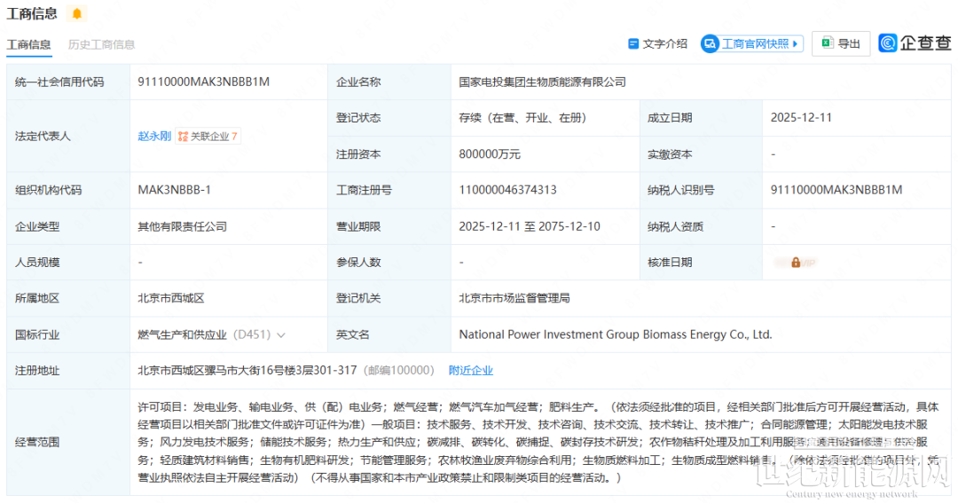 近期,国家电投集团生物质能源有限公司在北京成立,注册资金为80亿元。