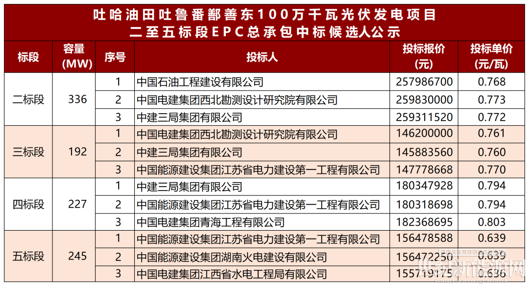 根据公告内容显示,此次共有7家企业入围,投标单价在0.636-0.803元/W。具体如下: