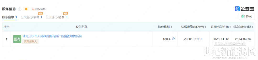 呼伦贝尔能源投资开发(集团)有限责任公司成立于2019年1月,法定代表人为徐向泽,经营范围含自有资金投资的资产管理服务、电力行业高效节能技术研发、电力设施器材制造、石油制品销售、工程技术服务、企业管理咨询、招投标代理服务、风力发电技术服务、太阳能发电技术服务等。股东信息显示,该公司现由呼伦贝尔市人民政府国有资产监督管理委员会全资持股。