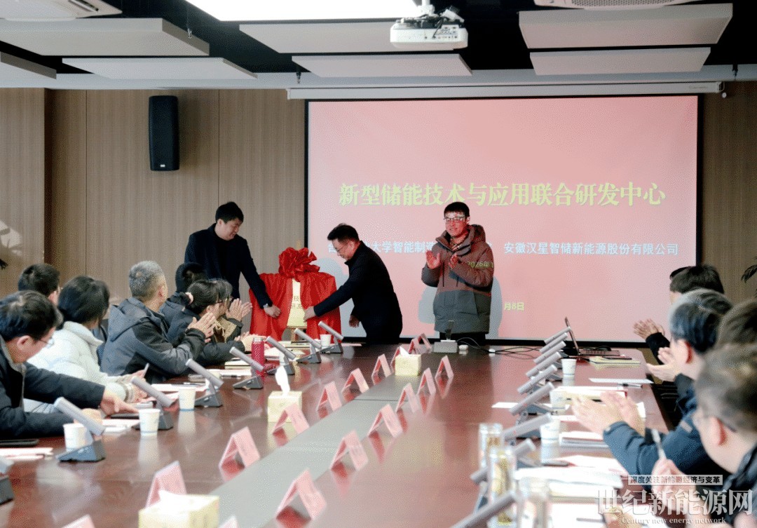 1月8日上午,安徽汉星智储新能源股份有限公司-合肥工业大学智能制造技术研究院“新型储能技术与应用联合研发中心”揭牌仪式在合工大智能院举行。合工大智能院院长杨学志、汉星智储总裁胡飞共同为联合研发中心揭牌。合工大智能院副院长朱晓勇主持仪式,双方代表共同见证这一重要时刻。