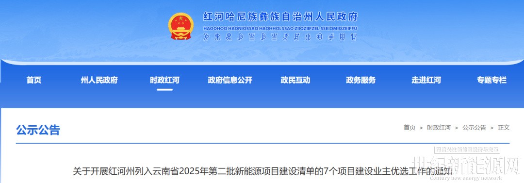 关于开展红河州列入云南省2025年第二批新能源项目建设清单的7个项目建设业主优选工作的通知