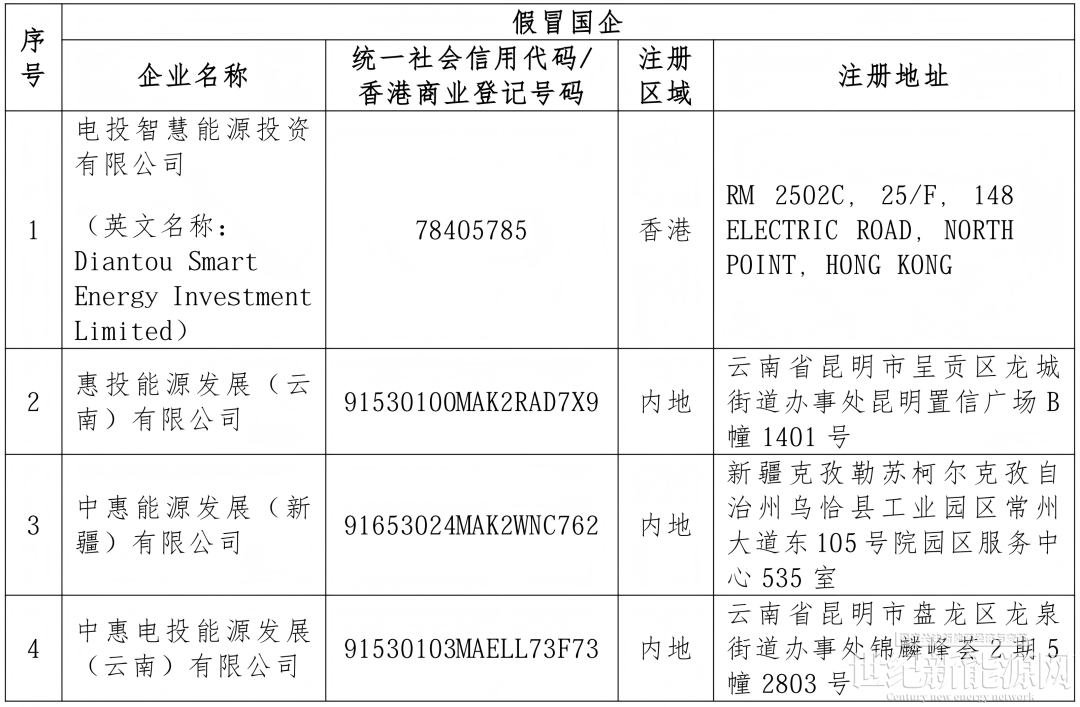 日前,国家电投香港财资管理有限公司发布《关于假冒国家电投香港财资管理有限公司所属子公司有关情况的严正声明》,声明称,一家名称为“电投智慧能源投资有限公司”(英文名称:Diantou Smart Energy Investment Limited)于中国香港登记成立,其中一位创办成员股东显示为与我公司同名同地址的香港主体,经内部核实,该公司(及其设立的任何子公司或关联主体)非我公司出资设立。