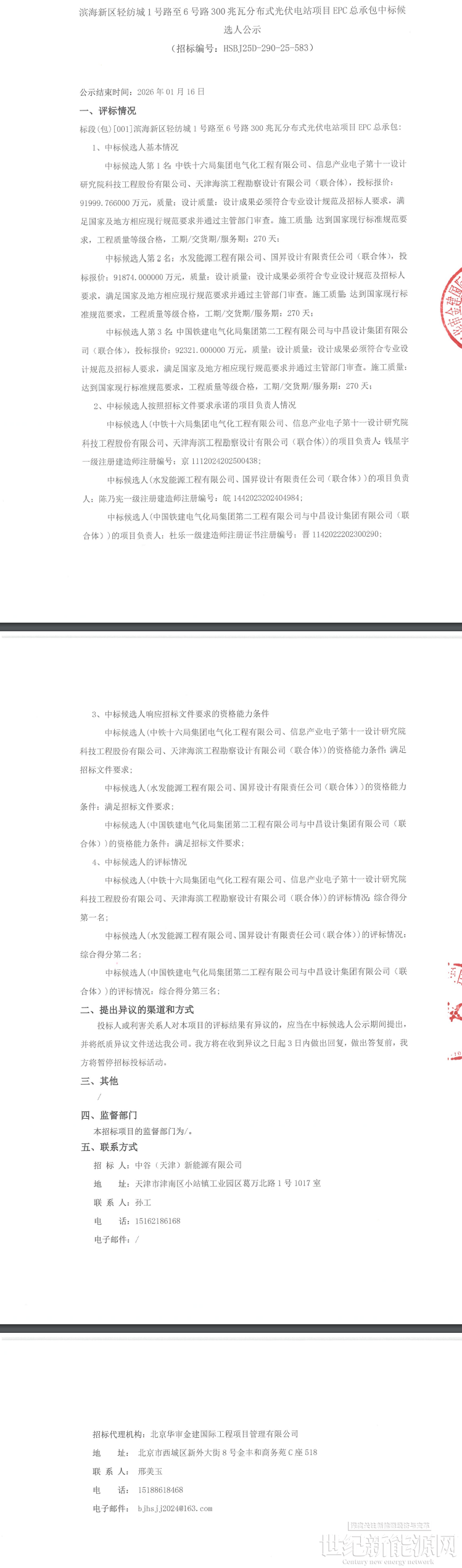 2025年12月23日发布滨海新区轻纺城1号路至6号路300兆瓦分布式光伏电站项目EPC总承包公开招标公告
