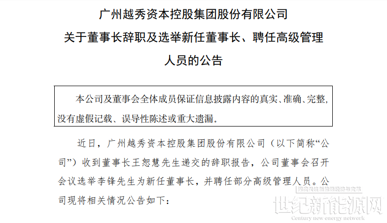 2026年1月9日,越秀资本发布公告称,公司董事会收到董事长王恕慧的书面辞职报告,其因工作变动辞去公司董事长、法定代表人、董事及董事会专门委员会委员等全部职务,且辞职后不再担任公司及控股子公司任何职务。值得注意的是,王恕慧原定任期至2026年9月13日,此次离任属于提前交接,但公告明确指出,其辞任未导致董事会人数低于法定最低人数,不会影响公司正常运作。