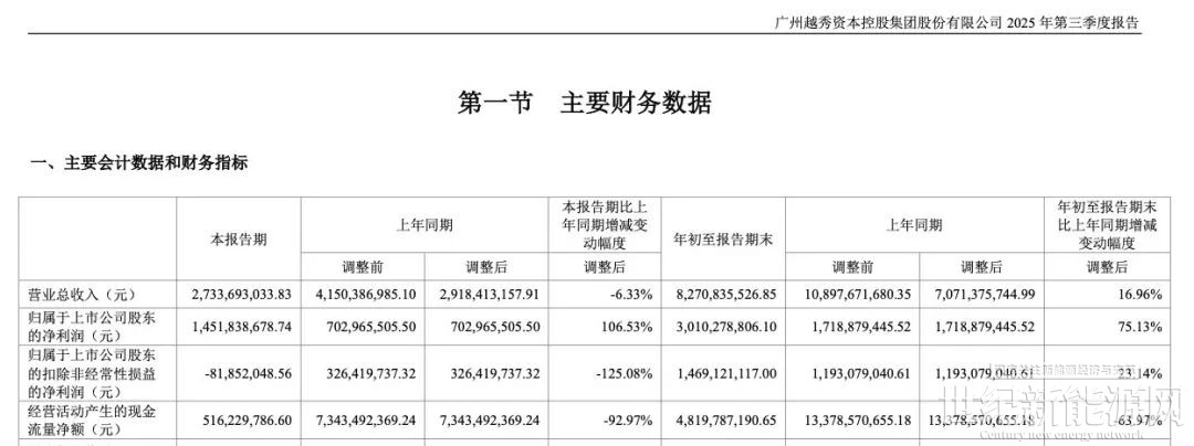2025年前三季度,越秀资本实现归母净利润30.10亿元,同比增速达75.13%,创下历史新高;同期销售净利率飙升至63.72%,远超2024年同期。其中,第三季度营收为27.34亿元,同比下降6.33%;归属于上市公司股东的净利润14.52亿元,同比增长106.53%。单季盈利能力同样表现亮眼。