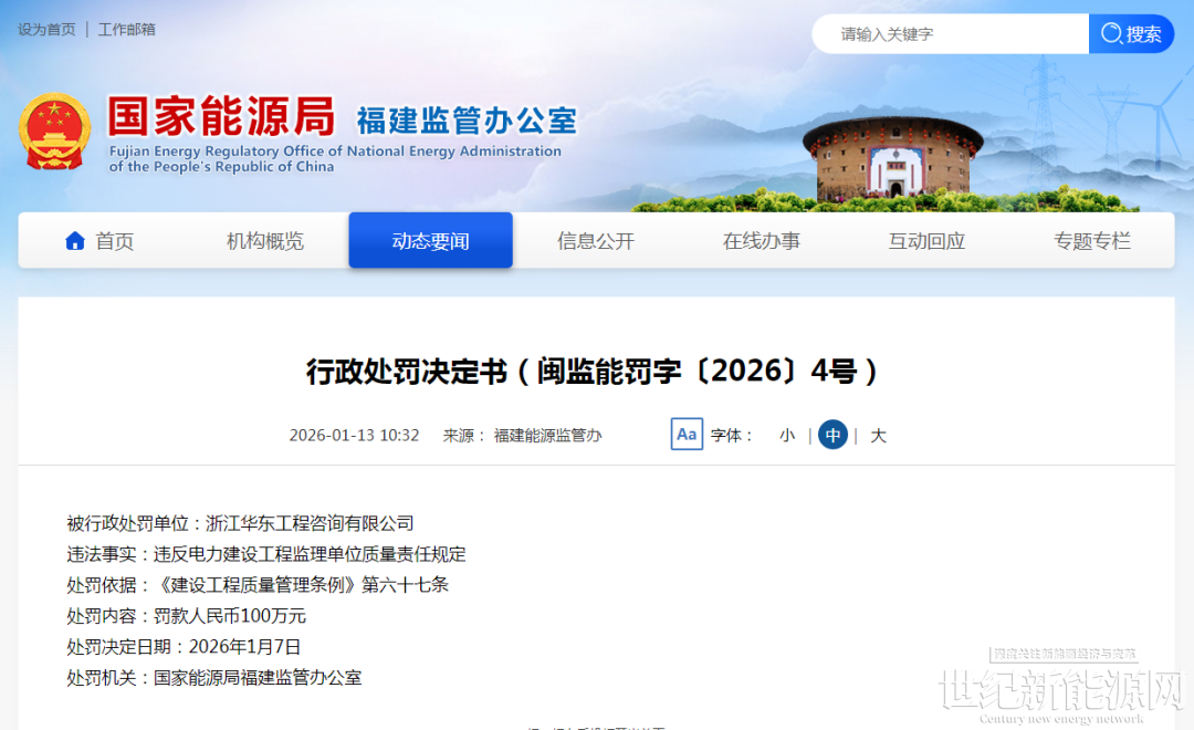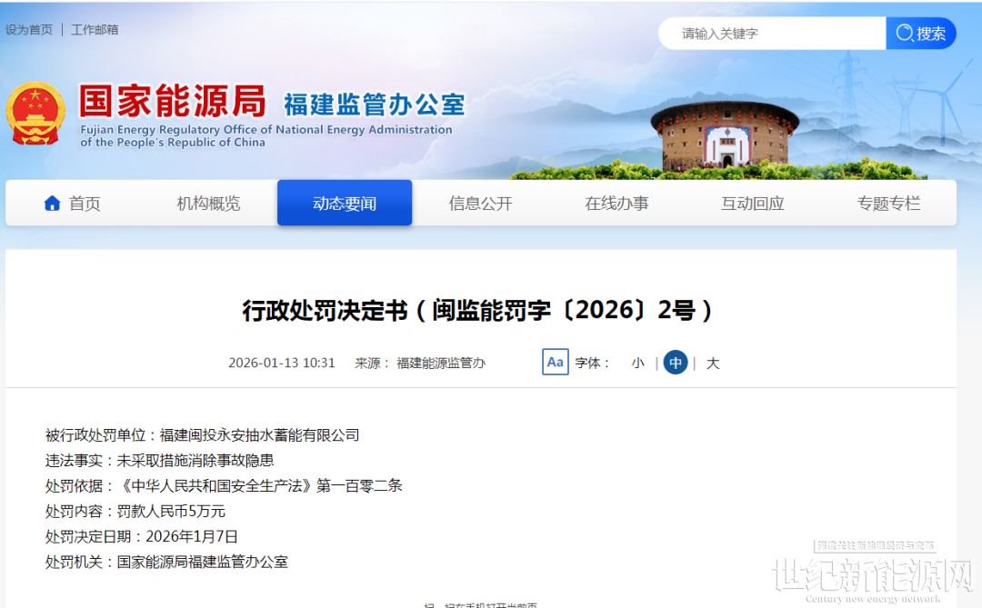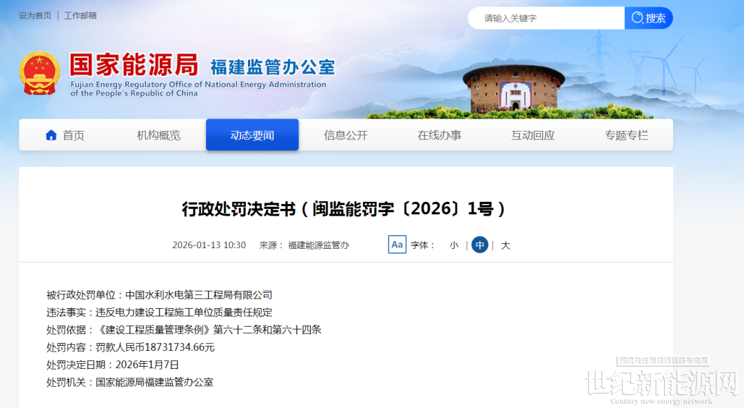 1月7日,国家能源局福建监管办公室发布三则行政处罚决定书。